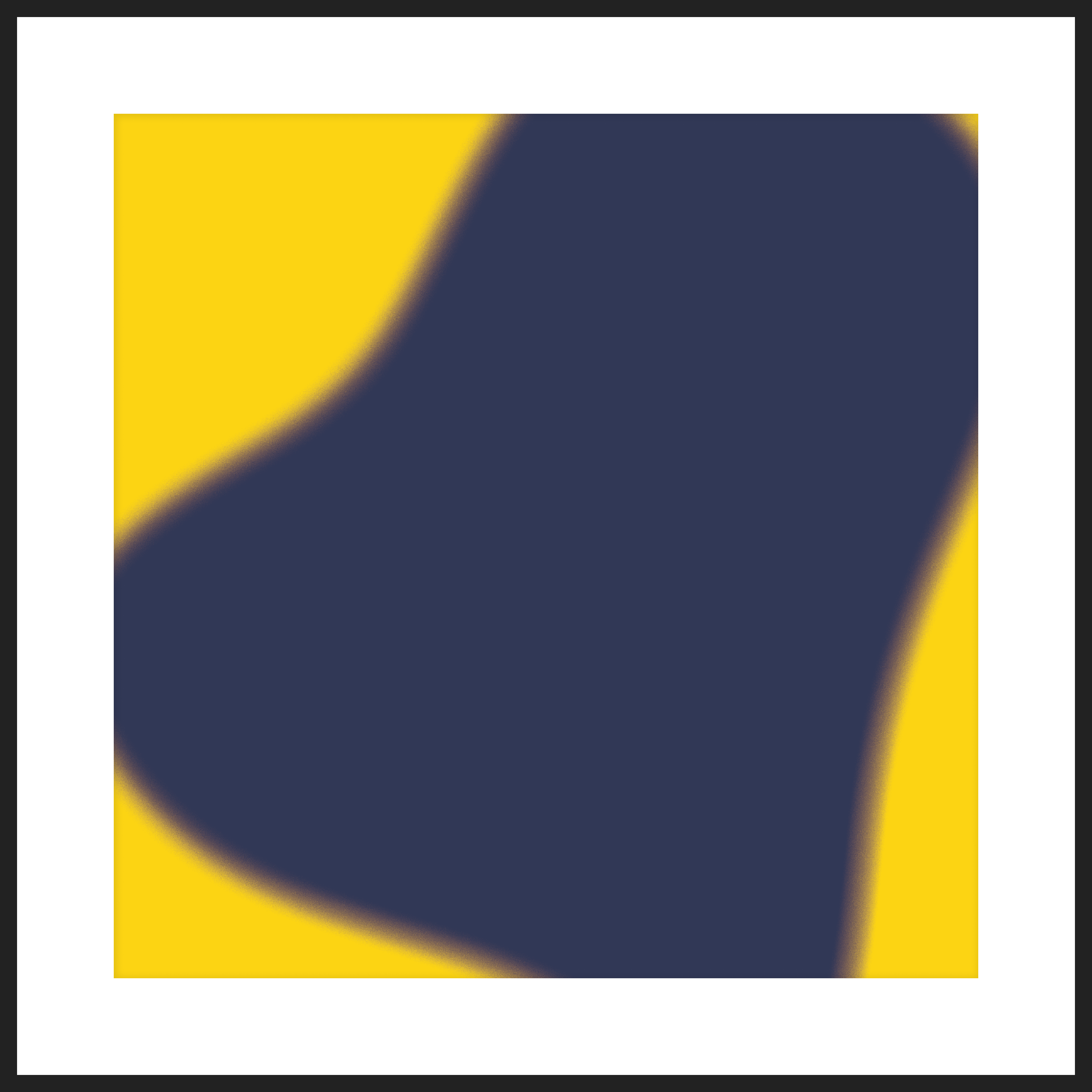 Cathedral Blue against Candlelight Yellow — a third breath, heavier, steadier, committed to shape. Hue 003/365 is offered as a limited, signed fine art giclée print edition, and as a singular NFT from A Year in Hues: 2026 — contemporary digital art for collectors drawn to restraint, structure, and inner weather.